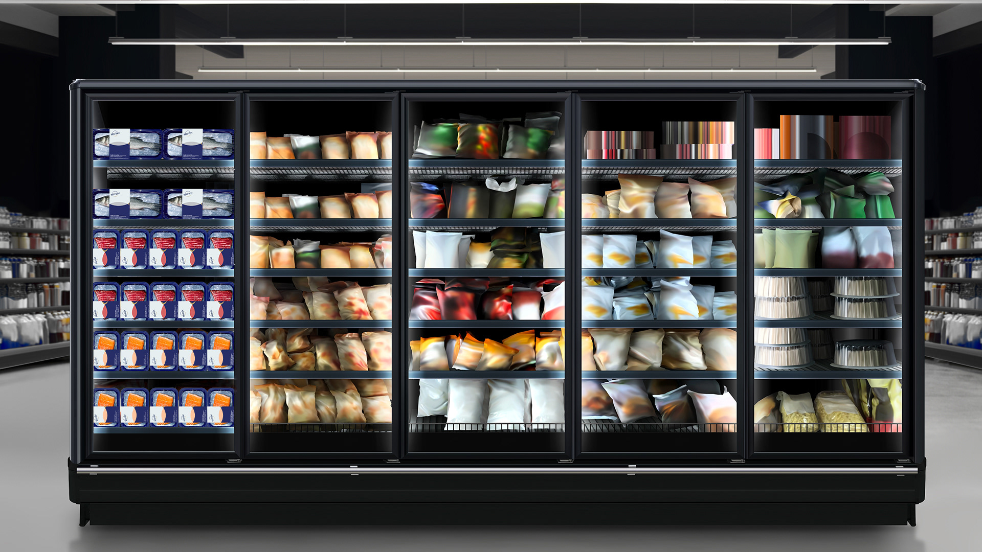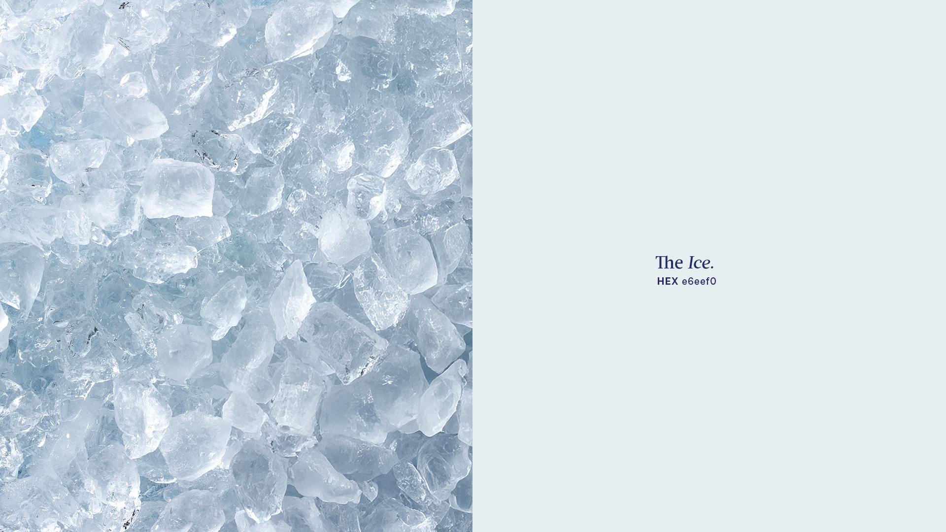 To enhance the aesthetic experience and communicate freshness, the graphic beneath the fish evokes the image of a bed of ice cubes, appearing on the blue plastic tray.